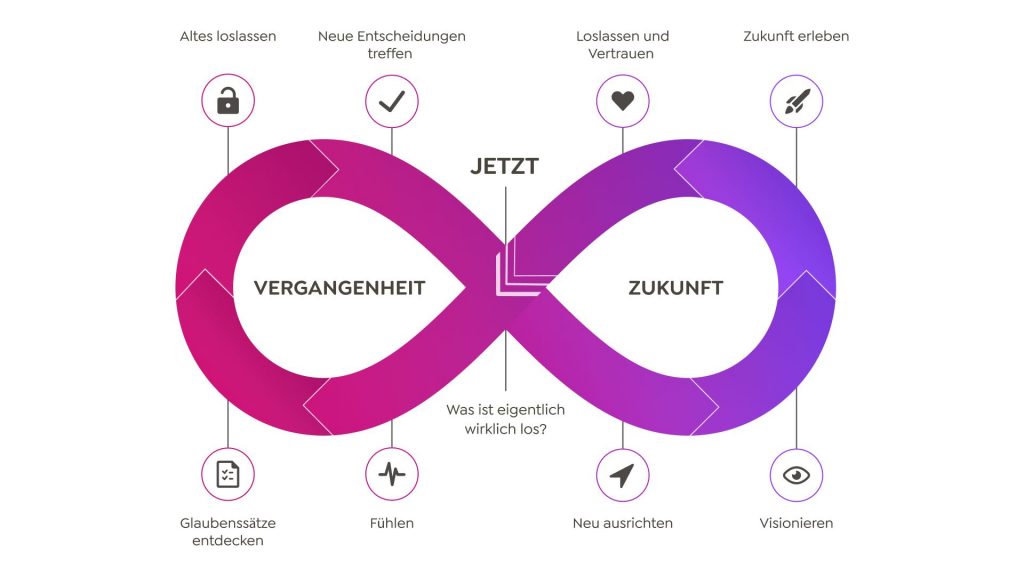 Oftmals sind es unbewusste Trigger und Reproduktionen der Vergangenheit, die uns immer wieder in die gleichen Situationen bringen. In einem Coaching gehen wir zusammen in die Vergangenheit und schauen wo das Problem/Thema das erste Mal entstanden ist. In Verbindung mit dem inneren Kind können wir so festsitzende Emotionen und Blockaden lösen, sie loslassen wodurch neue Energie freigesetzt wird. Diese nutzen wir dann in der Zukunft, um eine neue Entscheidung zu treffen.