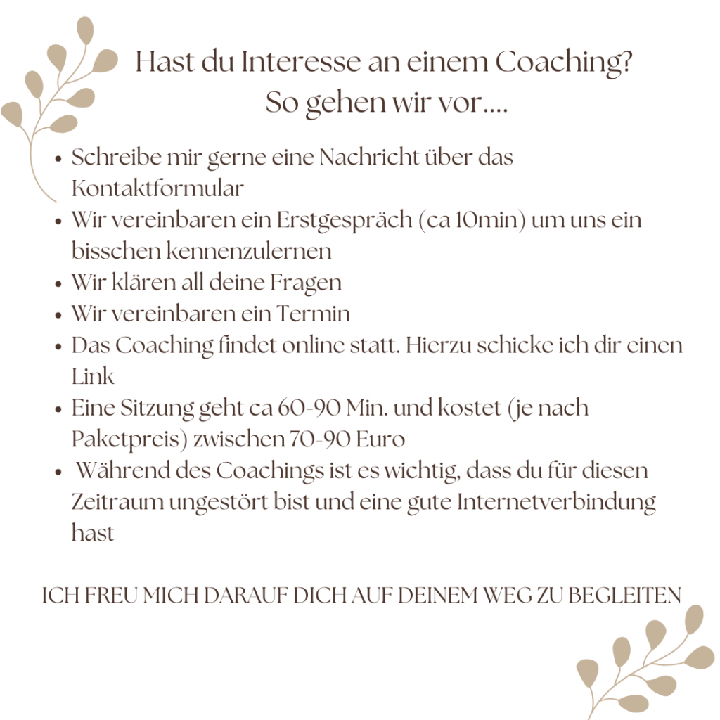 Mein Coaching basiert auf Vertrauen, Offenheit und einem klar strukturierten Prozess. Ich unterstütze dich dabei, dein persönliches Potential zu entfalten und dich zu einem erfüllteren und bewussteren Leben zu führen.